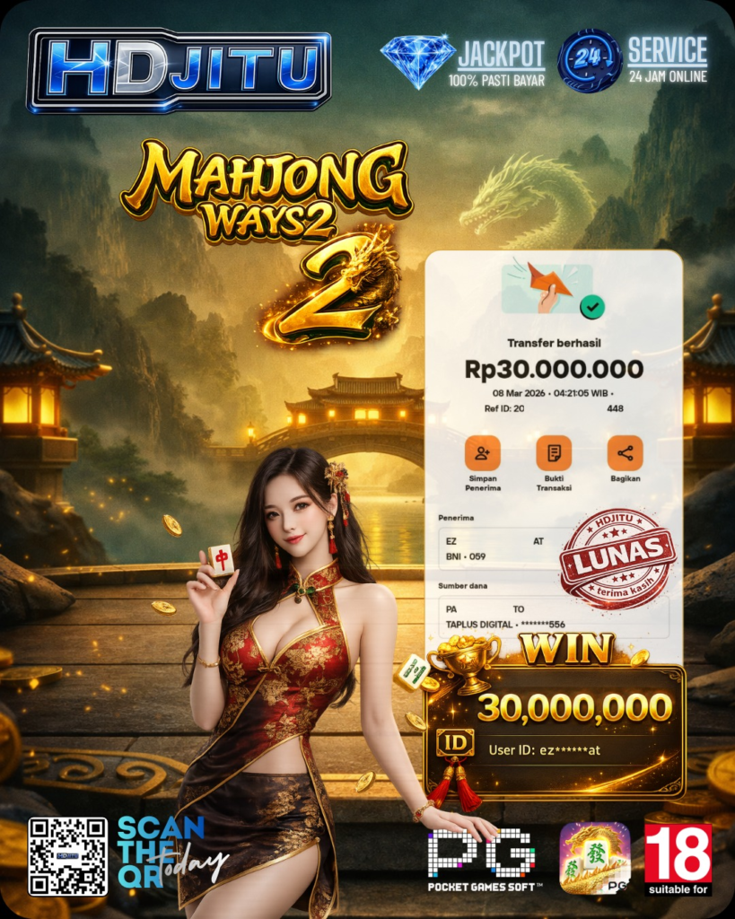 Selamat kepada member setia kami, telah mendapatkan JACKPOT besar Pada permainan Slot PG Soft – Mahjong Ways 2 🀄